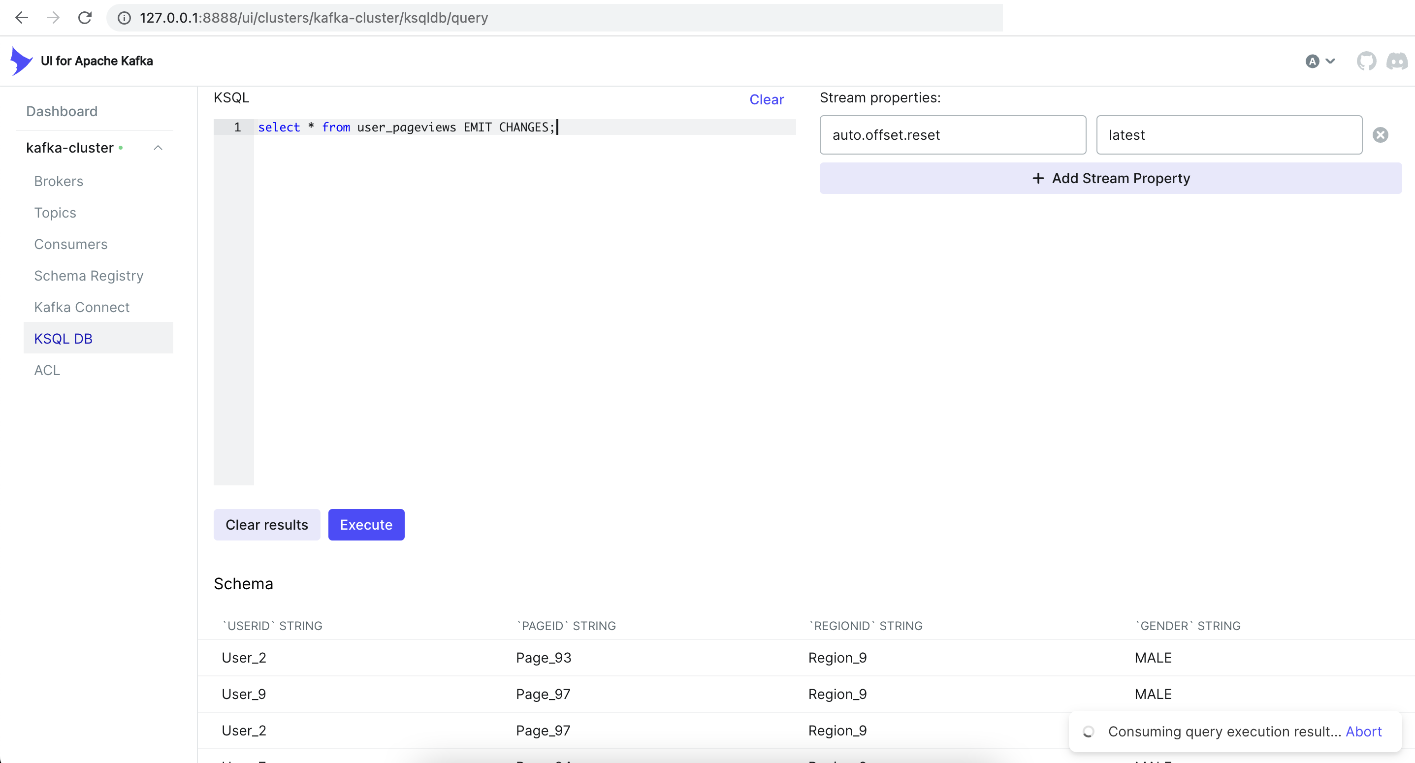 This will create a new stream named pageviews_stream that reads data from the pageviews topic.