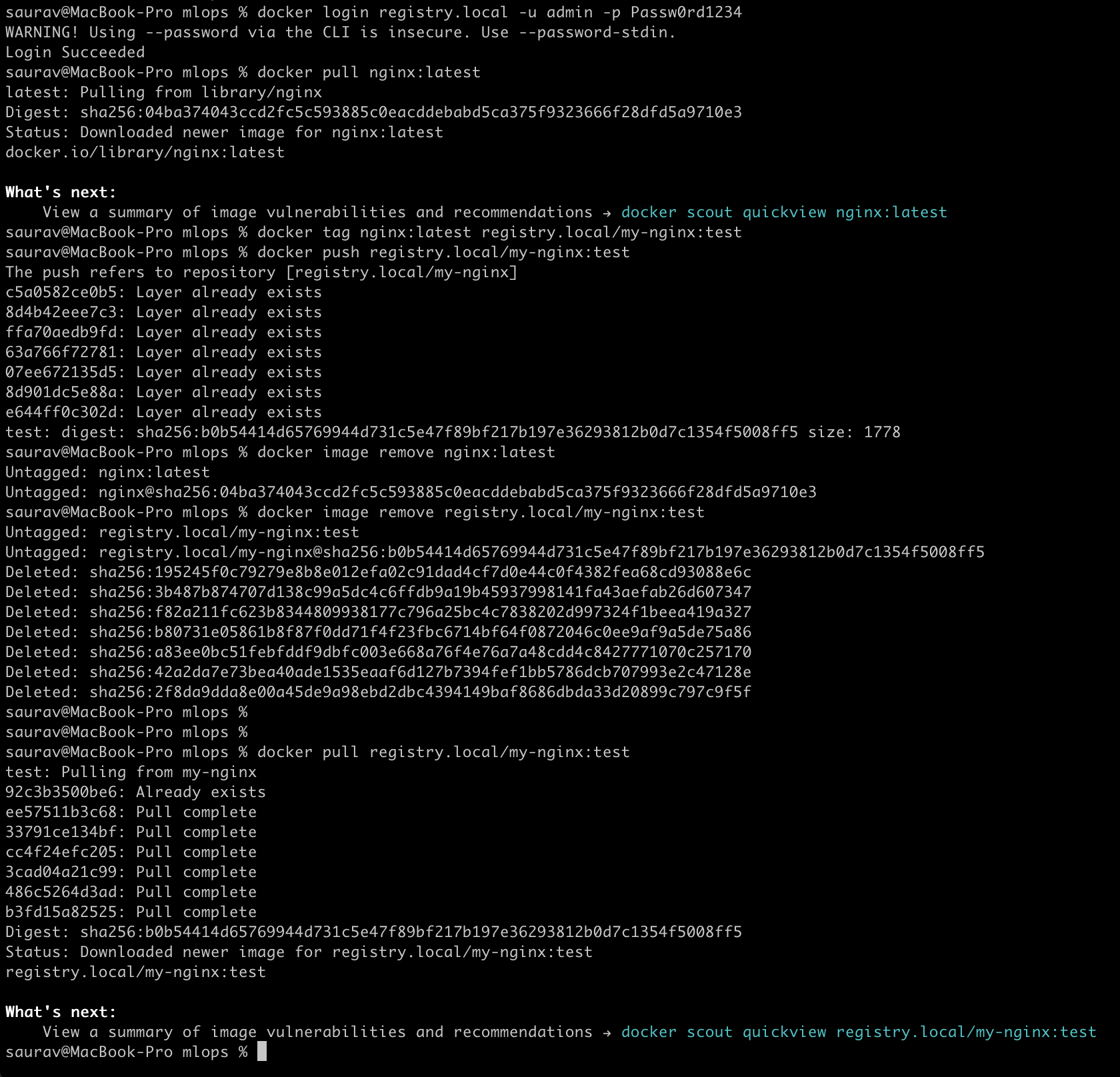 Finally, test your setup by pushing and pulling Docker images from your private registry: