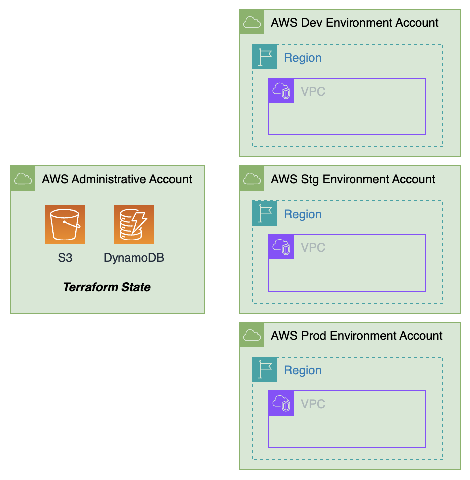 This blog post will walk you through the process of setting up such a pipeline. In this setup, Terraform State files are centrally managed within an AWS Administrative Account, utilizing S3 buckets for state storage and DynamoDB tables for state locking. The necessary AWS infrastructure services are then deployed to the respective AWS Environment Accounts.