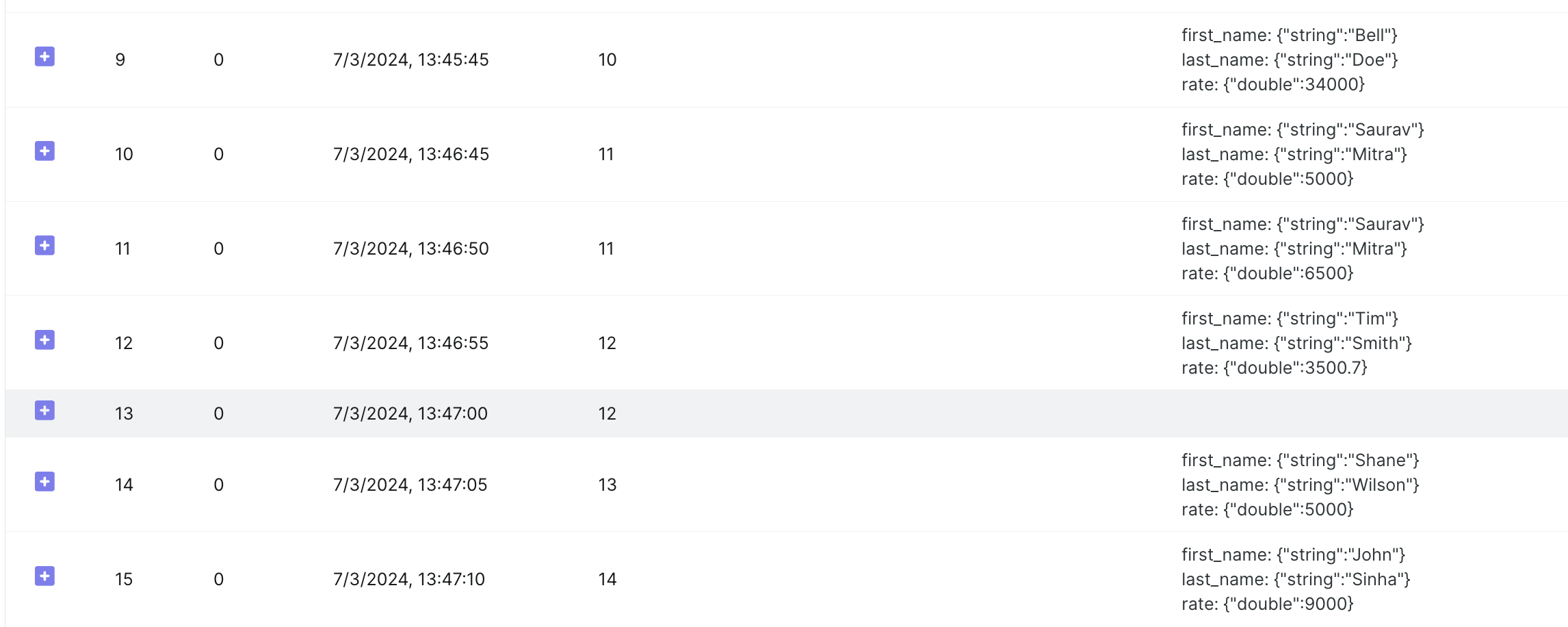 We can now see, that the database events have been streamed in near real-time to the Kafka Topic.